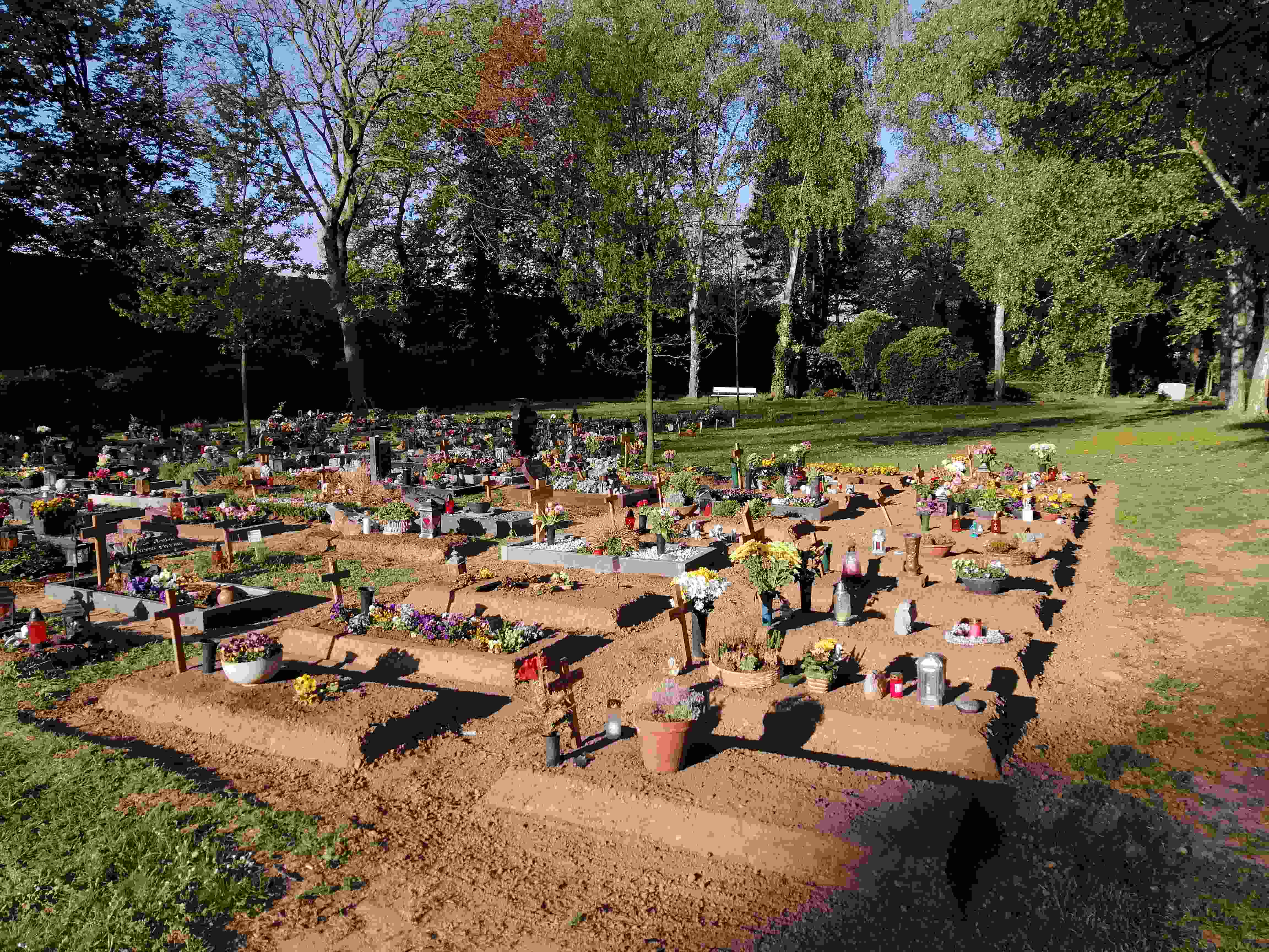 Heruntergefallene Äste von den Stürmen sind aufgesammelt. Ungepflegte und abgegebene Grabstätten wurden eingeebnet.
