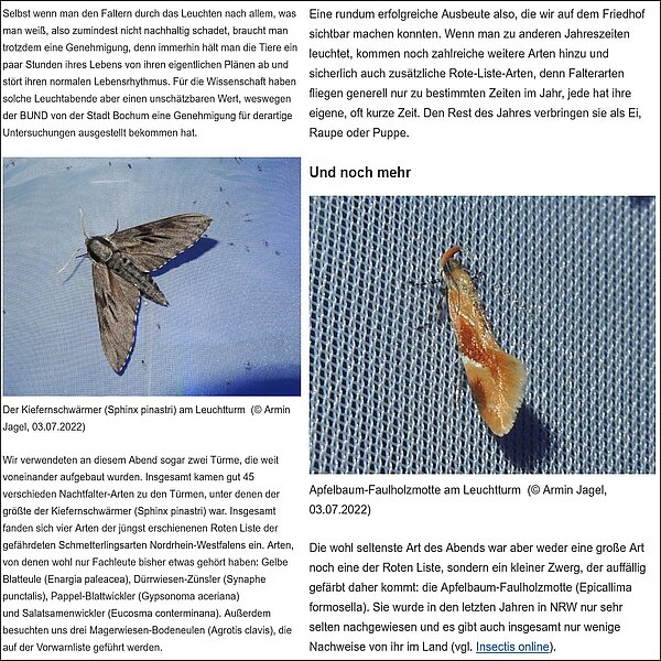 Mehr als 50 Schmetterlinge in nur einer Nacht auf dem ev. Friedhof in Wattenscheid / Juli 2022