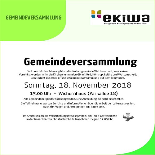 Evangelische Kirchengemeinde Wattenscheid lädt ein: