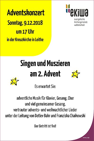 Am Vorabend des 3. Advent, am 15.12.2018 um 17Uhr lädt die Ev. Kirchengemeinde Wattenscheid zum traditionellen Offenen Singen in die Friedenskirche ein.