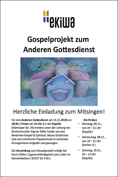 GOSPELPROJEKT für den ANDEREN GOTTESDIENST (11. November) - Probenbeginn am 6. November - Proben in wechselnden Räumlichkeiten, beachten Sie die Hinweise auf dem Plakat