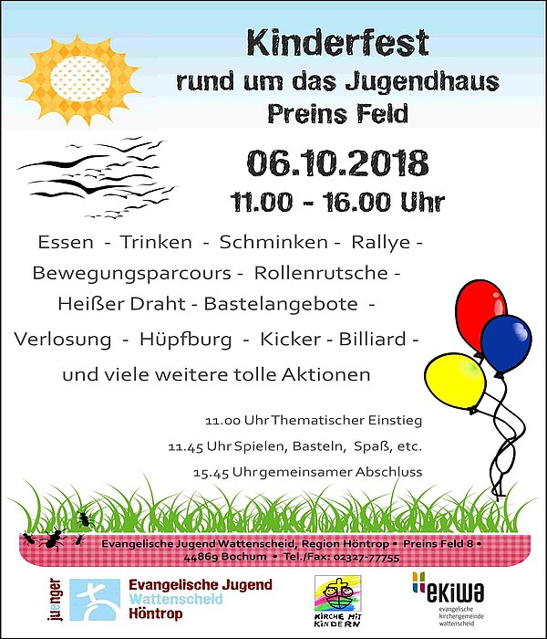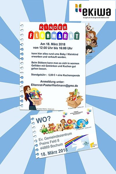 Der Förderverein des Pastor Viertmann Kindergartens Bochum-Höntrop e. V., veranstaltet nach dem Sonntag-Gottesdienst einen Kinderflohmarkt im Gemeindehaus Preins Feld 8