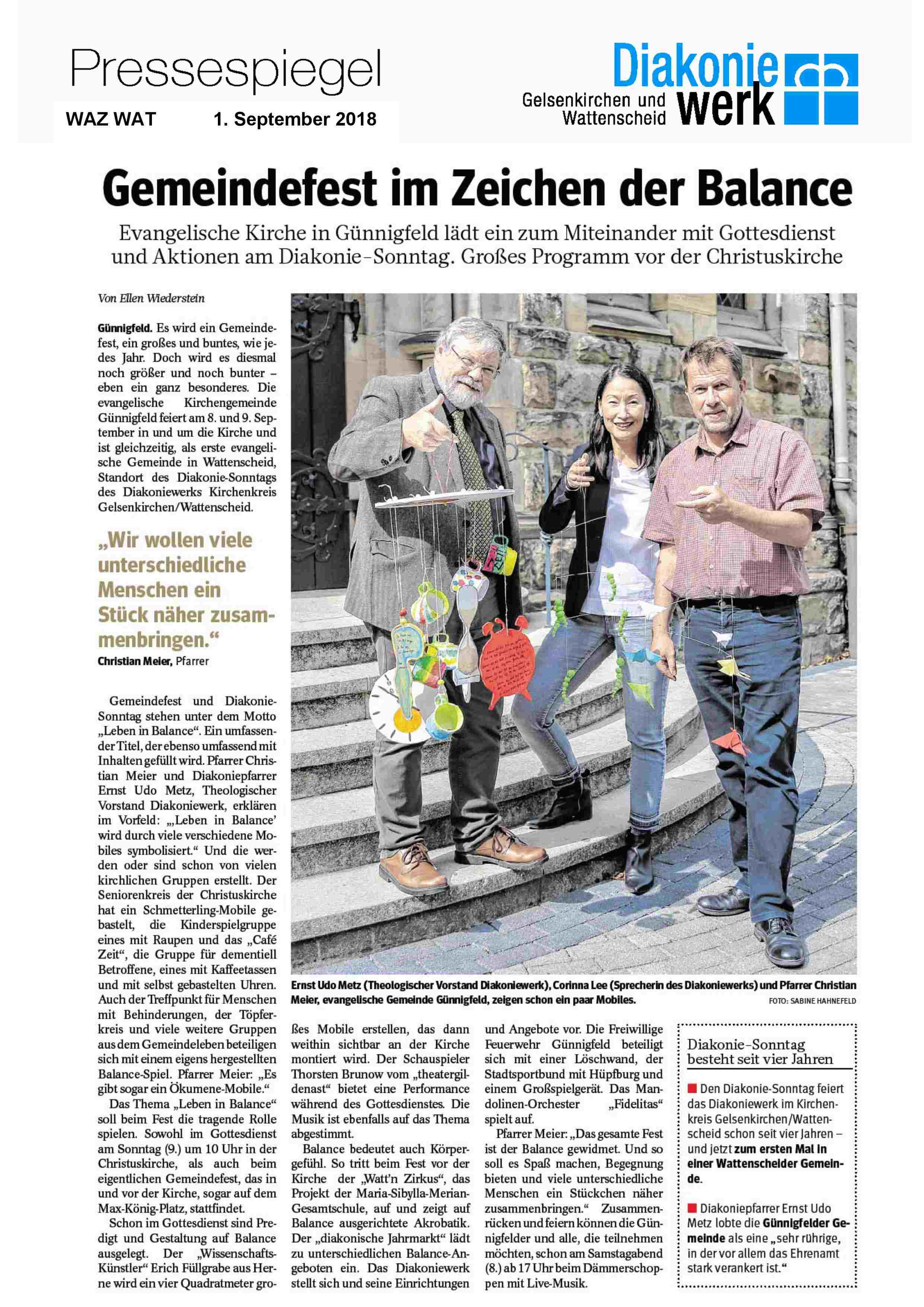 SAMSTAG/SONNTAG 8.+ 9. SEPTEMBER 2018: GEMEINDEFEST am DIAKONIE-SONNTAG - GEMEINDEZENTRUM Christuskirche