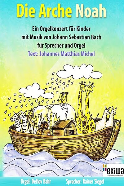 Rainer Siegel lässt Vögel durch die Kirche flattern, die Dorfbewohner über Noah und seine Familie spotten und nimmt alle Zuhörer mit hinein in die Geschichte. Die Orgel beschwört das heraufziehende Gewitter, lässt die Arche von den Tritten der Elefanten erzittern und beschreibt den Regenbogen am Ende der Geschichte. Mit der Musik von Johann Sebastian Bach, gespielt von Detlev Bahr (Kirchenmusiker e-ki-wa).