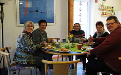Im Gemeindezentrum Kreuzkirche in Leithe treffen sich Menschen zum Cafétrinken in unserem Café "Himmelsleither" oder beim Evangelischen Gesellen & Meisterverein.