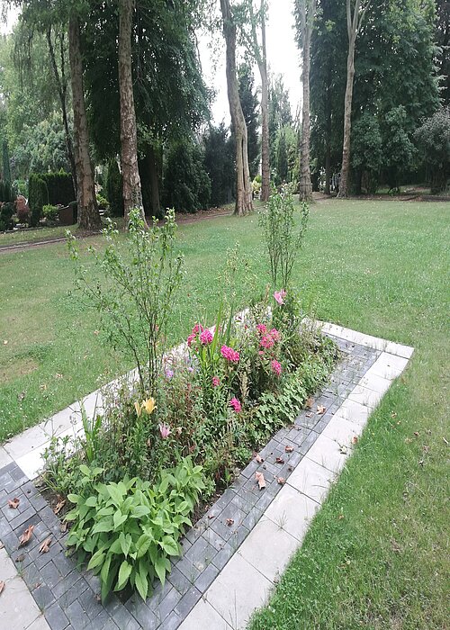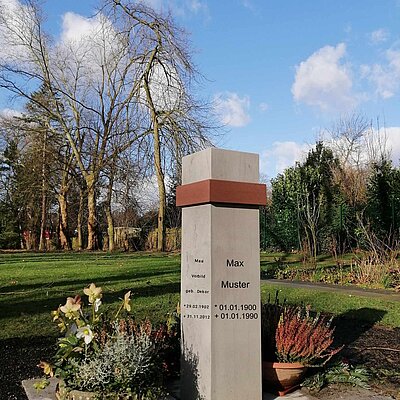 Dieses Beisetzungsart ist pflegefrei und die Friedhofsverwaltung übernimmt die Rasenpflege für 25 Jahre. An der Stele wurden 4 Urnen beigesetzt.
