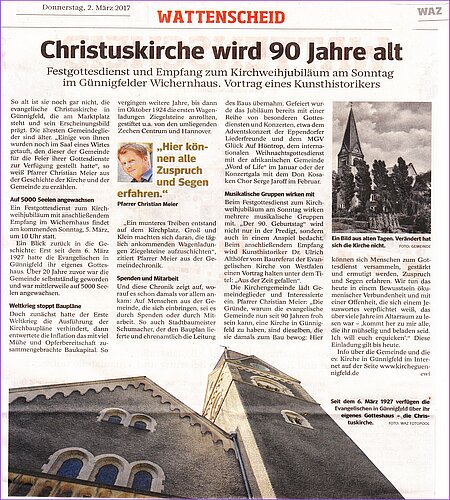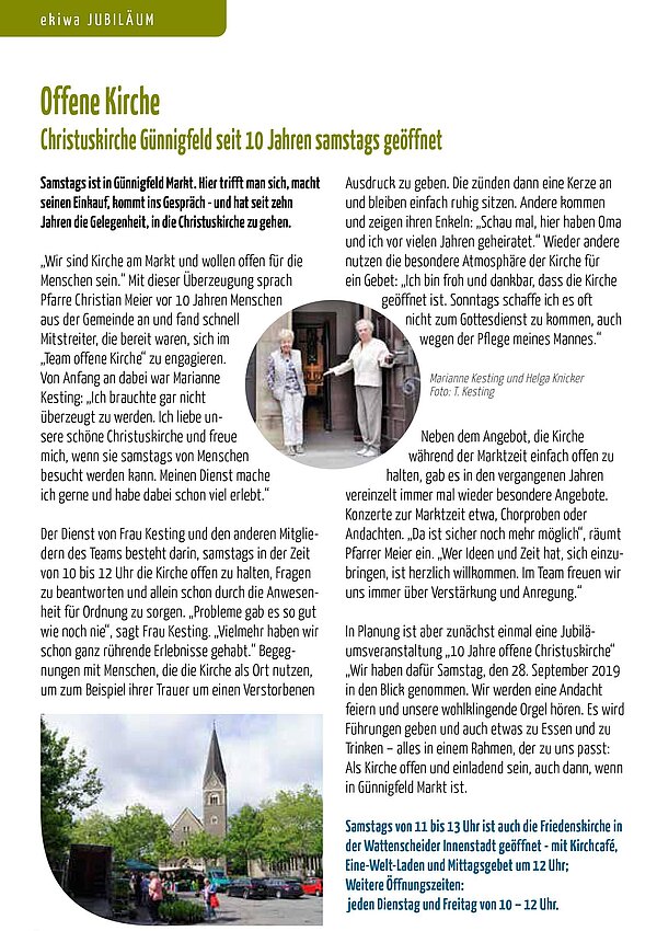 Es treffen sich Menschen, die nur mal eben auf dem samstäglichen Wochenmarkt etwas einkaufen wollen. Genauso schauen auch Menschen von weit entfernten Teilen unserer Republik herein, die beispielsweise zum Klassentreffen nach Günnigfeld gekommen sind und vor vielen Jahren in unserer Kirche konfirmiert worden sind. Auch wird unsere Kirche von Menschen genutzt, die um liebe Menschen trauern, die sie verloren haben.