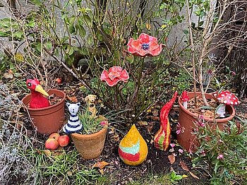 Wir haben Spaß am kreativen Gestalten, Formen und Arbeiten mit Ton. Töpfern ist für unterschiedlichste Fähigkeitsstufen geeignet und so vielfältig, dass es niemals langweilig wird. Wir arbeiten mit der Platten-, Wulst- oder Aushöhltechnik. Als Anregung schauen wir uns andere Töpferarbeiten an, nutzen das Internet und setzen eigene Ideen um. Das Schöne in der Gruppe ist, dass wir uns mit unseren unterschiedlichen Erfahrungen gegenseitig helfen und uns bei Fragen rund um die Technik und Gestaltung unterstützen.