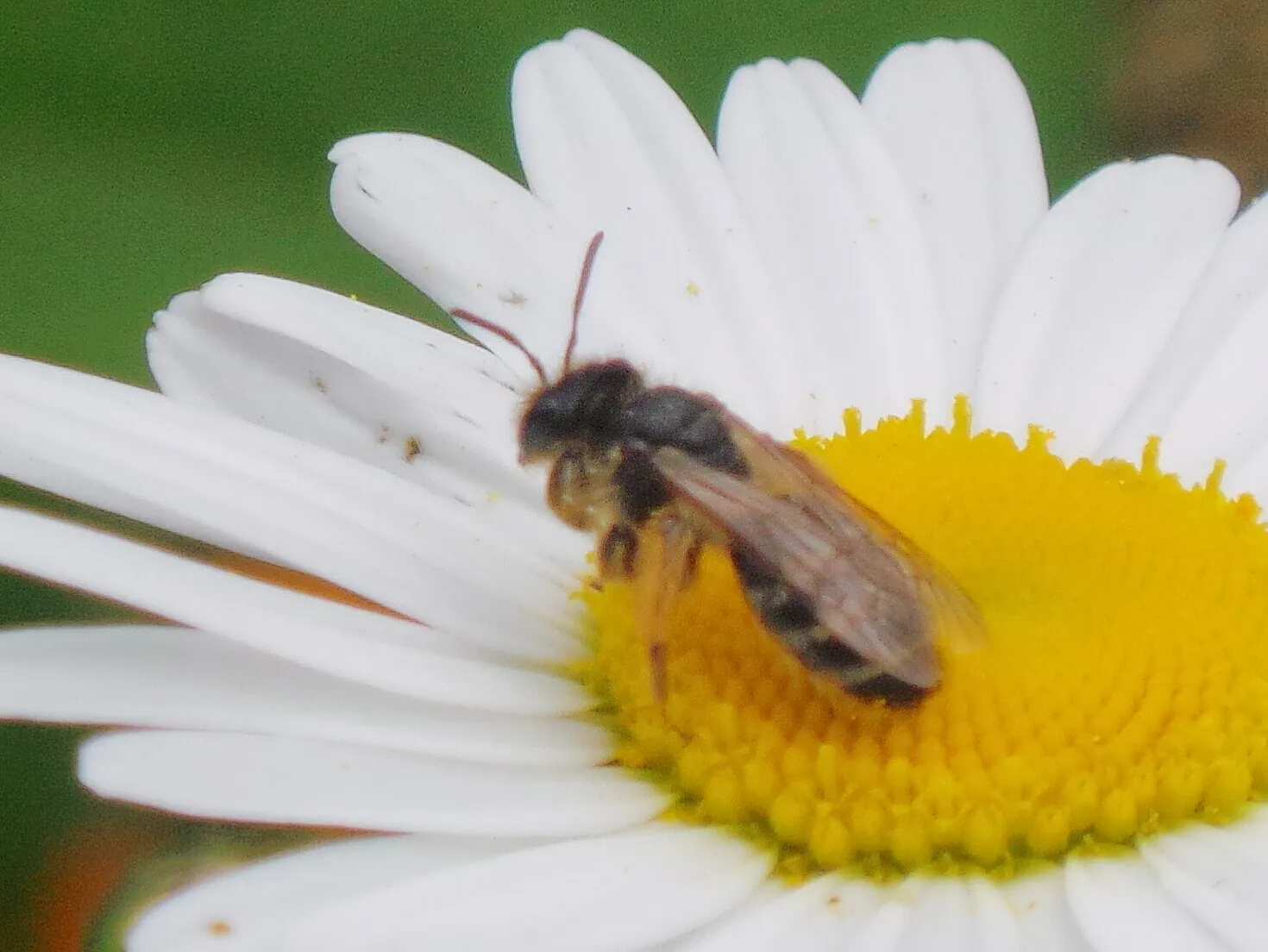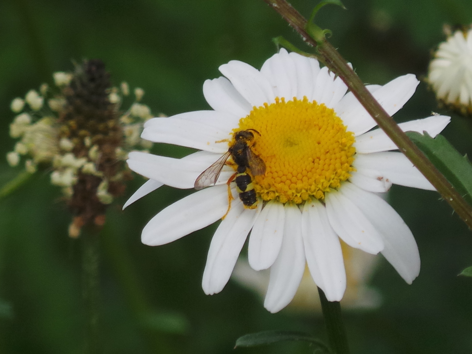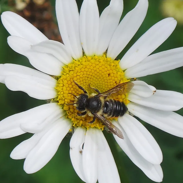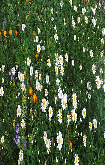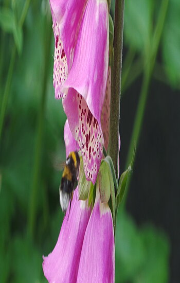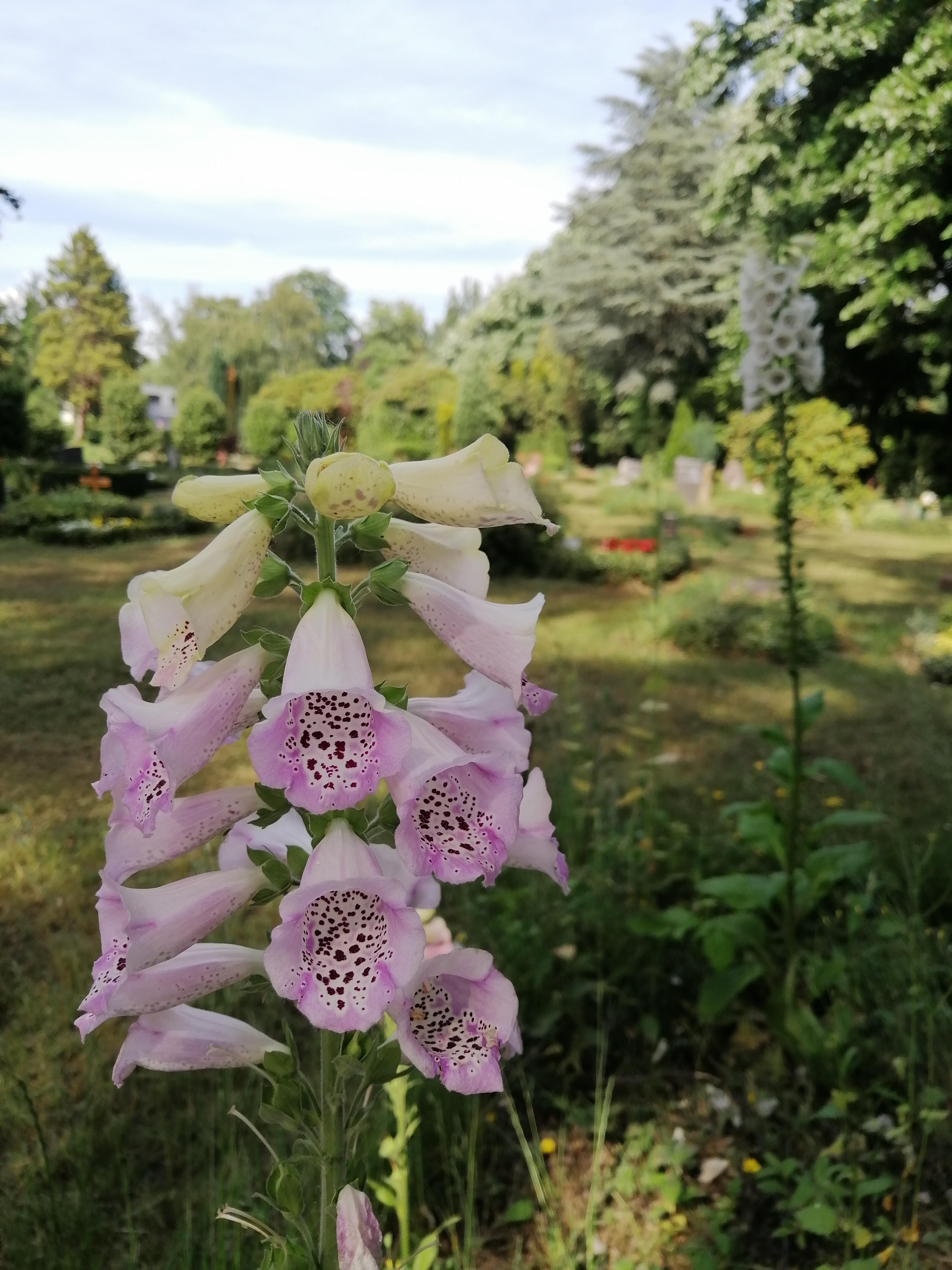Jetzt blühen Margeriten, Ringelblumen, Spitzwegerich, Phacelia und Klee. An der ein oder anderen Stelle haben sich Pflanzen auch schon von alleine angesiedelt, wie z.B. der Fingerhut und Akkelei. Selten gewordene Käfer und Wildbienen haben eine neue Heimat auf dem Friedhof gefunden und nehmen das Angebot an.