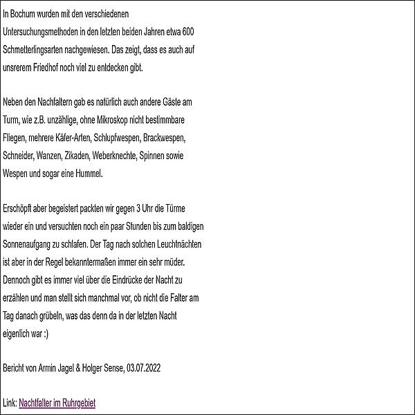 Mehr als 50 Schmetterlinge in nur einer Nacht auf dem ev. Friedhof in Wattenscheid / Juli 2022