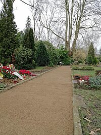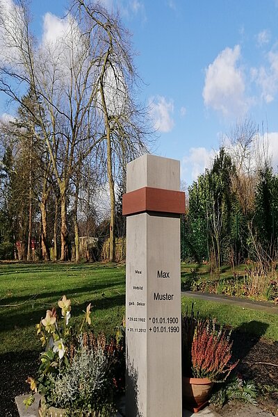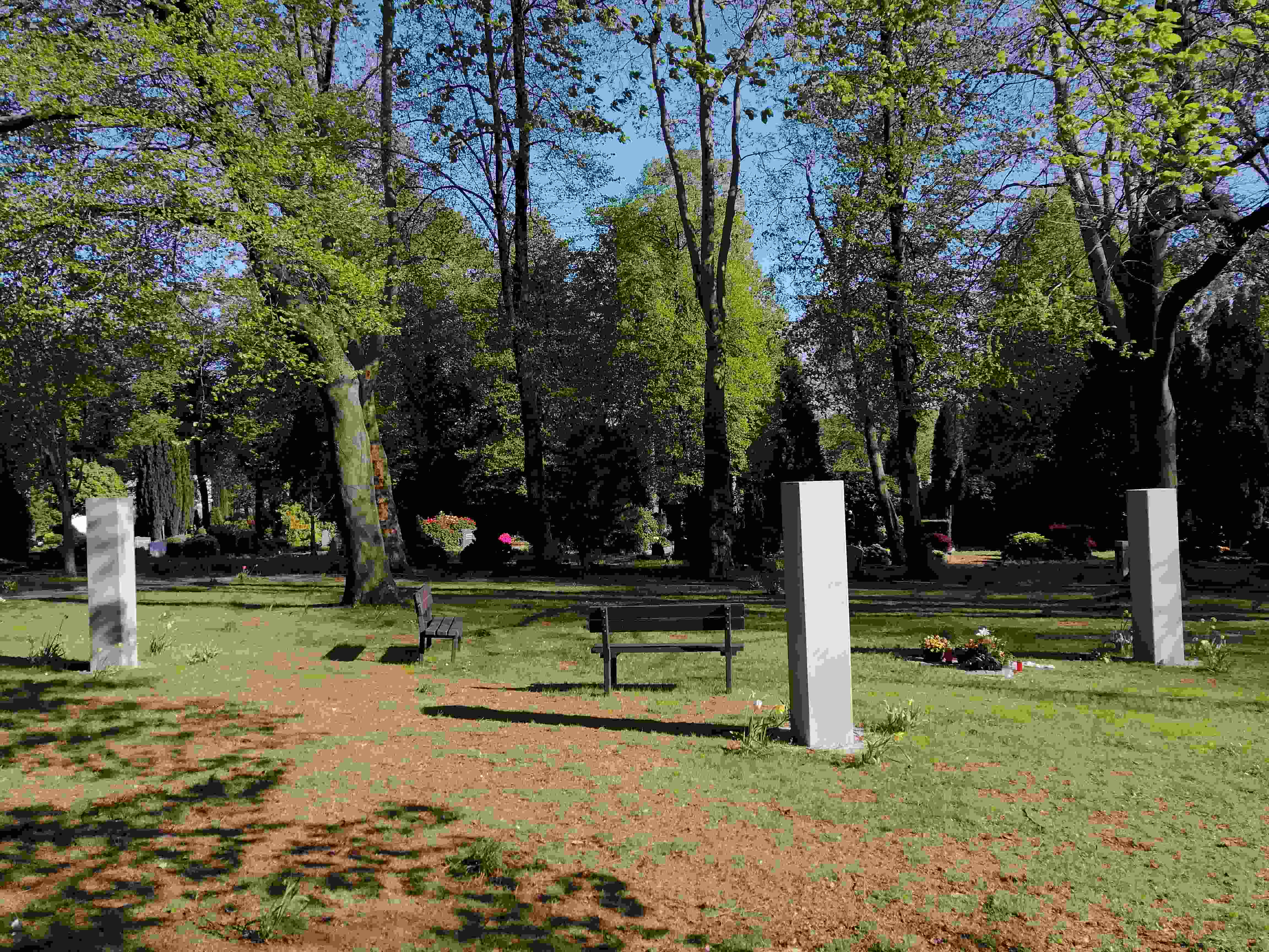 Dieses Beisetzungsart ist pflegefrei und die Friedhofsverwaltung übernimmt die Rasenpflege für 25 Jahre. An der Stele wurden 4 Urnen beigesetzt. Die Stele wurde in Deutschland aus heimischen Natursteinen hergestellt. Auf dem Feld XIV werden neben dem Urnengarten weitere Stelen gesetztwerden.