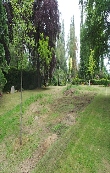 Heruntergefallene Äste von den Stürmen sind aufgesammelt. Ungepflegte und abgegebene Grabstätten wurden eingeebnet.
