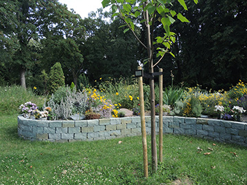 Es wurden eine Hopfenbuche und eine Zierkirsche und fast ein Dutzend Blühsträucher gepflanzt.