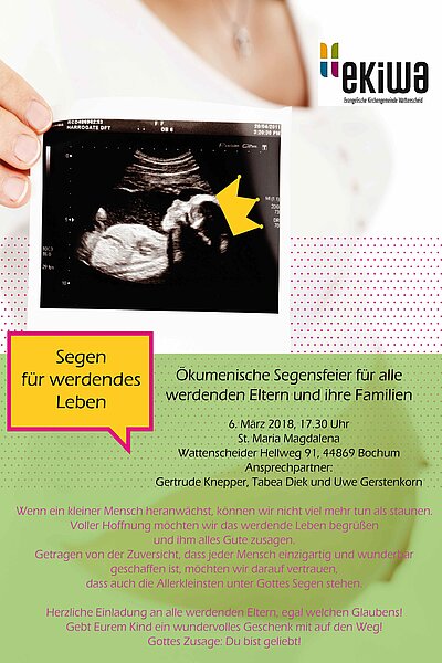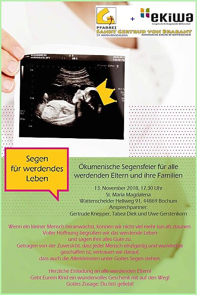 DIENSTAG 13. NOVEMBER 2018, 17.30 UHR: ÖKUMENISCHE SEGENSFEIER für alle werdenden Eltern und ihre Familien - in Kirche St. Maria Magdalena, Wattenscheider Hellweg 91, 44869 Bochum-Höntrop