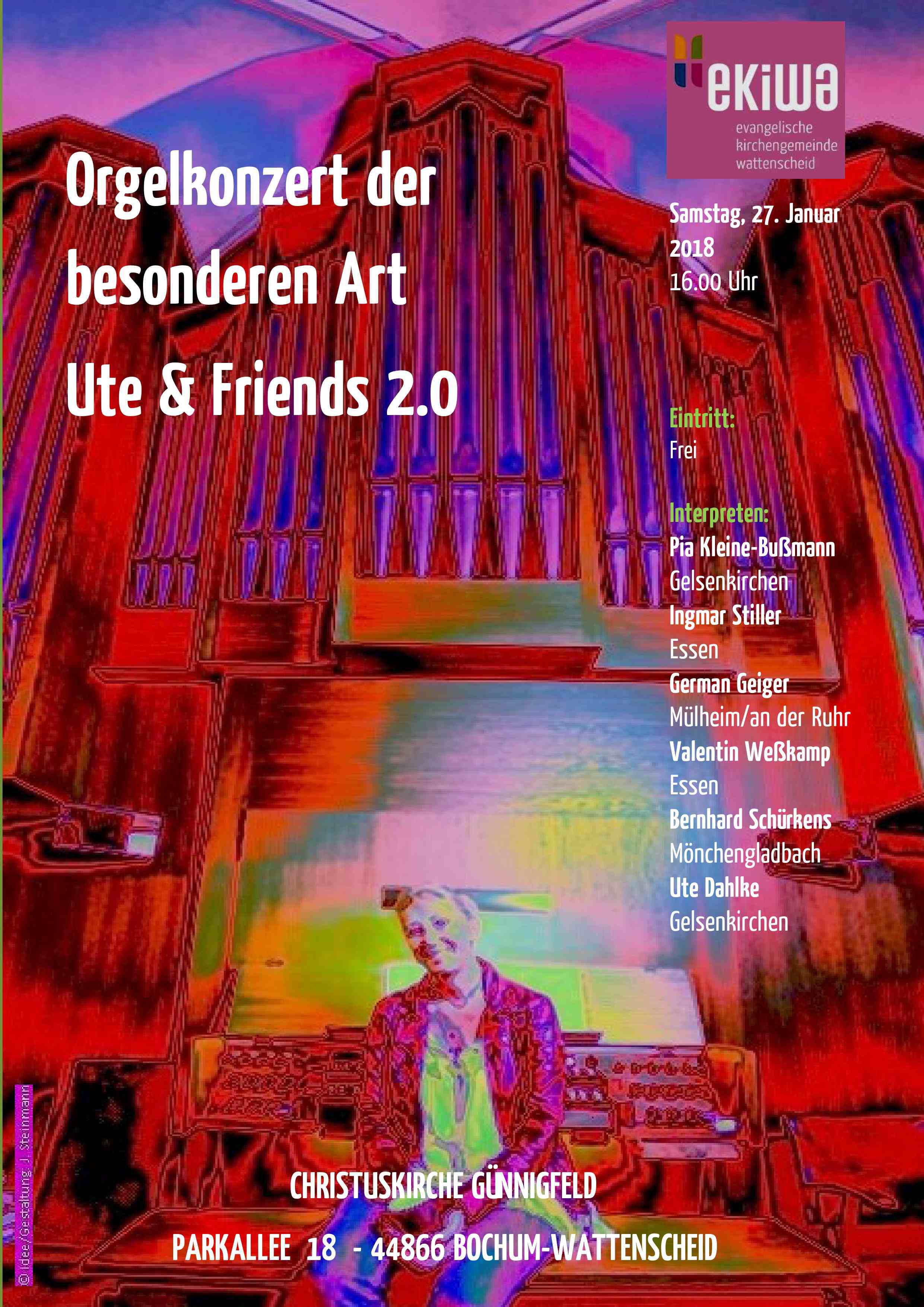 SAMSTAG, 27. JANUAR 2018, 16.00 UHR: Orgelkonzert der besonderen Art in der Christuskirche, Ute & Friends 2.0