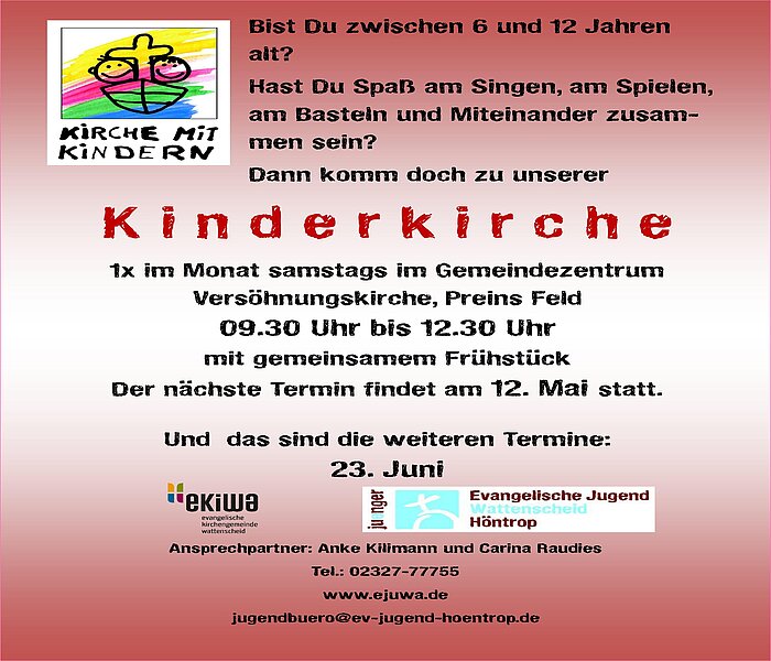 Der Förderverein des Pastor Viertmann Kindergartens Bochum-Höntrop e. V., veranstaltet nach dem Sonntag-Gottesdienst einen Kinderflohmarkt im Gemeindehaus Preins Feld 8