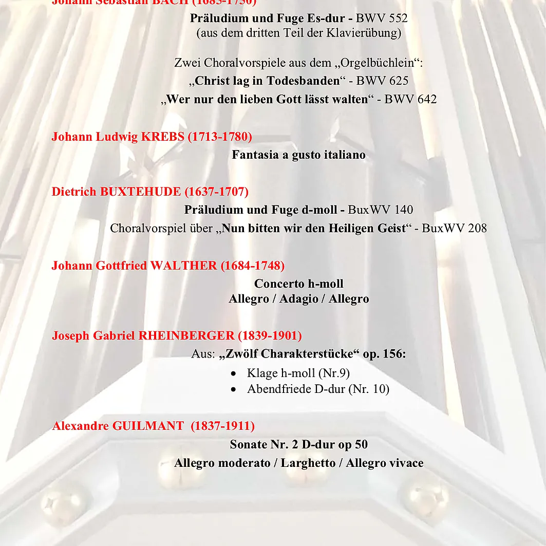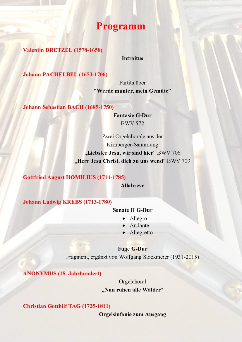 MITTWOCH, 31. OKTOBER 2018, 18 UHR: Festgottesdienst am Reformationstag / Christuskirche /Wiederinbetriebnahme Orgel mit der Kantate von D. Buxtehude "Alles, was ihr tut mit Worten oder mit Werken"