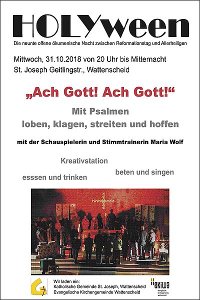 MITTWOCH, 31. OKTOBER 2018, 19.30-22.00 UHR: Ökumenische Bibelnacht 2018 - in der "St. Maria-Magdalena Kirche", Wattenscheider Hellweg 91