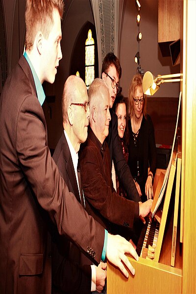 Nach dem etwa einstündigen Gottesdienst lädt die Gemeinde dann zum Beisammensein im Kirchraum und zu einer Orgelführung ein, bei der Orgelbaumeister und Organist ungewohnte Einblicke ermöglichen.