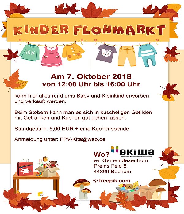 SONNTAG, 7. OKTOBER 2018, ab 12 UHR: KINDERFLOHMARKT im Evangelischen Gemeindezentrum Preins Feld 8