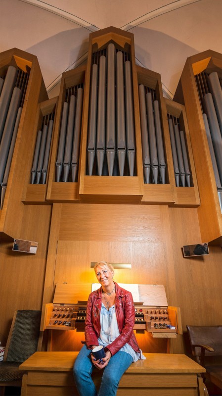 Ute Dahlke (Kirchenmusikerin der Gemeinde von 2010-2017) in der Christuskirche auf dem Foto mit abgebildet
